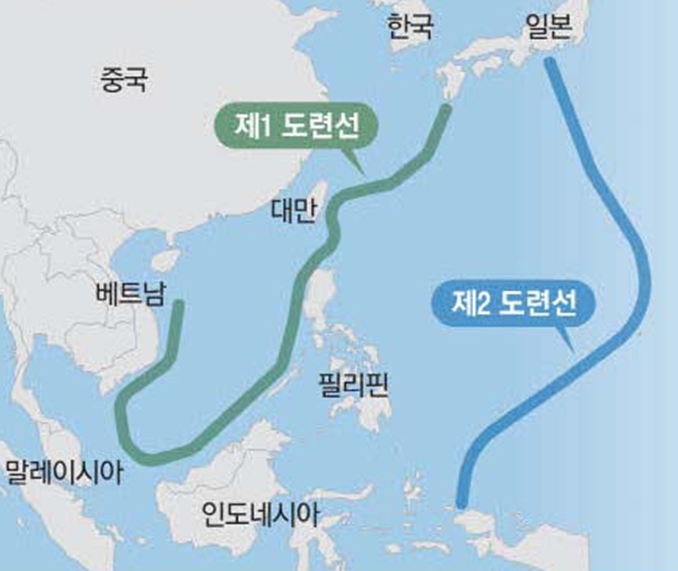 제1 도련 : 수역통제권 확립(일본-류큐-대만-필리핀-보르네오)
