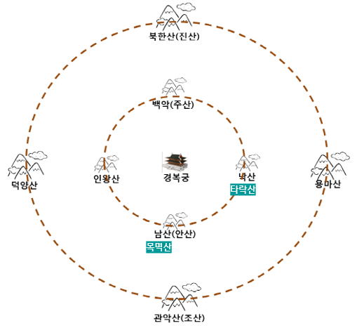 조선시대 한성은 내사산(內四山, 백악산·인왕산·목멱산·타락산)에 둘러싸인 분지지형으로, 백악산은 다음 3개의 골짜기를 가지고 있었다.