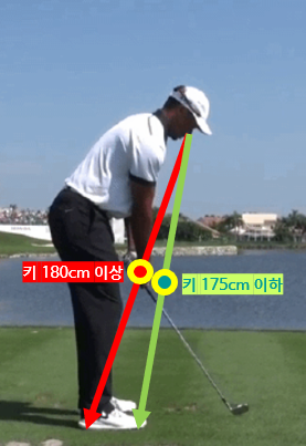 어색할 수도 있지만, 양팔은 가급적 지면과 수직으로 내려주어야 스윙궤도가 제대로 나올 수 있다. 달리 말하면, 타자의 시각에서 어드레스 그립은 발바닥 어디엔가 위치해야 한다. 보통 키가 큰 투어프로 기준으로 발뒤꿈치에 그립이 보이게 두라고 말하지만, 170~175cm 가량의 신장에서는 발가락 정도의 위치가 충분한 듯하다.