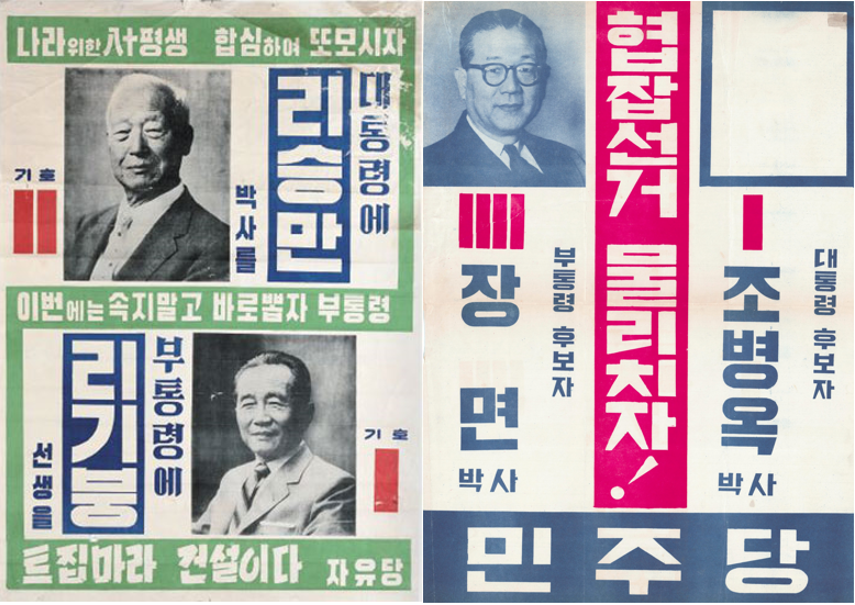 조병옥의 급사로 대통령 단일후보가 된 85세의 이승만은 당선이 유력했지만, 자유당의 고민은 4년 전과 같은 대결구도(장면·이기붕)에 놓인 부통령 선거였다. 4년 전 이기붕이 장면에게 패했지만, 이번만큼은 이기붕의 당선이 필요했다. 아마도 다음 임기 중에 노령인 이승만이 사망·궐위 가능성이 높았으며, 권한대행을 염두하여 부통령을 반드시 차지해야 했을 것이다. 궐위(闕位, 벼슬이 빠지다)는 어떤 직위·관직이 비어있는 상태를 의미한다. 참고로 궁(宮)은 국왕·왕비·신하가 거주하거나 근무하는 공간을 의미하는데, 궁을 둘러싼 높은 담장·성문을 궐(闕)이라 한다. 암튼 이렇게 기획된 것이 부정선거이다.