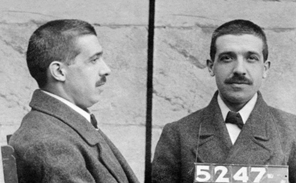 1919년 폰지는 보스턴 사무실을 열고, 유럽의 지인들에게 광고사업 아이디어를 홍보했다. 만국우편연합의 국제반신우표권의 차익을 이용하여 투자자들에게 45일 내에 50%의 이익을 약속했는데, 만국우편연합(UPU)의 국제반신우표권(IRC)은 국가 간 우편요금 차이로 인해 차익이 발생할 수 있다. 초기에는 투자자들을 만족시켰지만, 얼마 못가 우편사기 혐의로 12년형을 선고받았다. 1934년 폰지는 출소와 동시에 이탈리아로 추방되었고, 이탈리아에서 사기행각을 벌이기도 했다. 말년에는 통역가로 일했다고 하다가, 1949년 67세의 나이로 브라질(리우데자네이루)에서 사망했다.