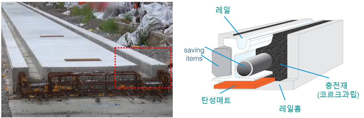 위례선 콘크리트 도상(좌)와 구성요소(우)