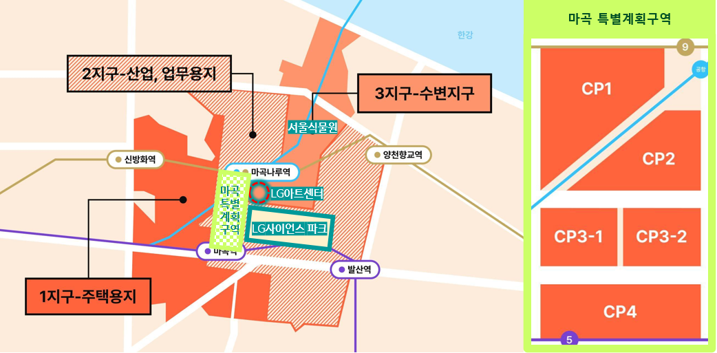 CP1 구역 : 업무·판매 시설, 코엑스마곡, 호텔(머큐어앰배서더)